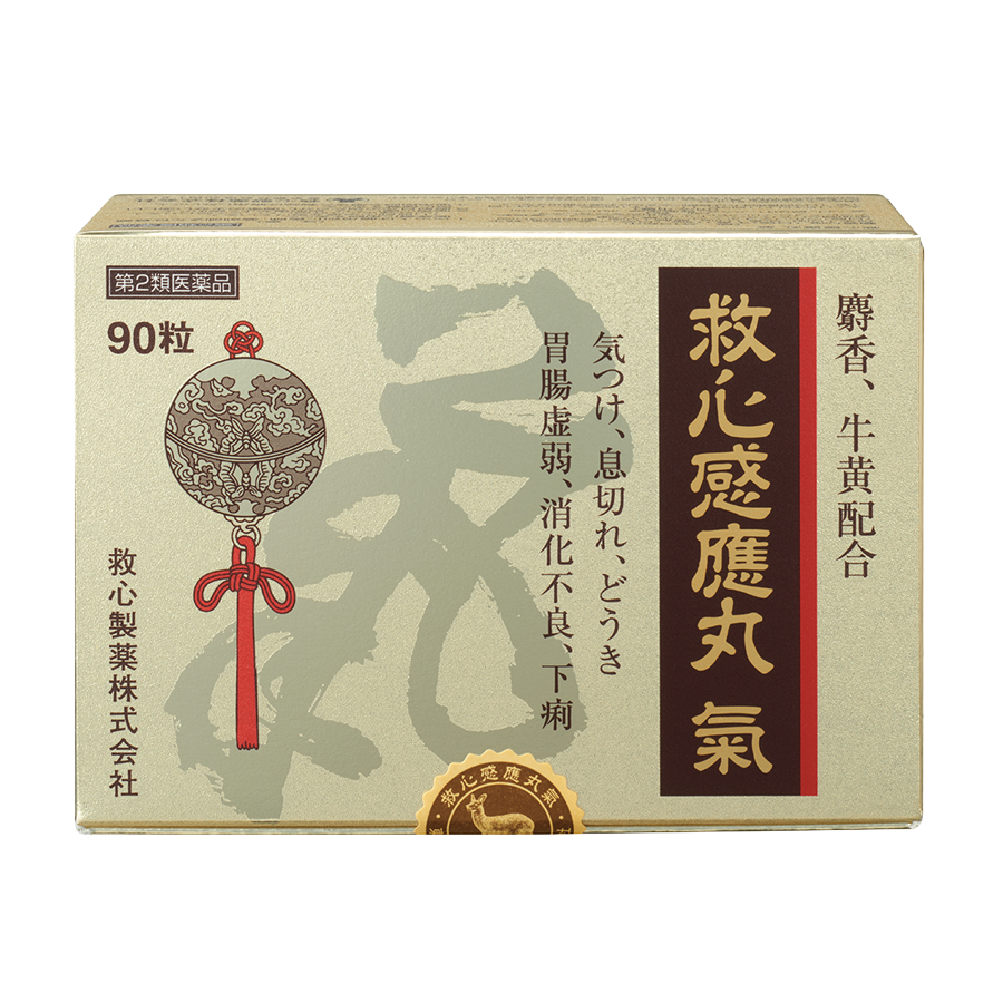 救心感應丸 氣は、精選した麝香、牛黄等の7種の動植物生薬と、熊胆の主要成分であるウルソデオキシコール酸を配合した製剤で、気つけ、息切れ、どうき、胃腸虚弱、消化不良、下痢にすぐれた効きめを現します。