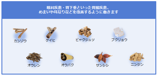 気上錠は、眼科疾患・胃下垂といった胃腸疾患、めまいや耳なりなどを改善するように働く生薬製剤です。